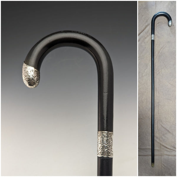 1921年 英国アンティーク 紳士用ステッキ 純銀装飾 ブラックシャフト 92cm