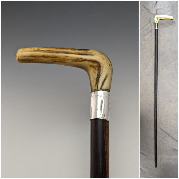 1894年 英国アンティーク 紳士用ステッキ 純銀装飾アントラーハンドル ブラックシャフト 84cm