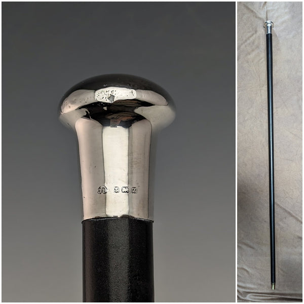 1924年 英国ヴィンテージ 紳士用ステッキ 純銀製 丸ハンドル ブラックシャフト 91.5cm