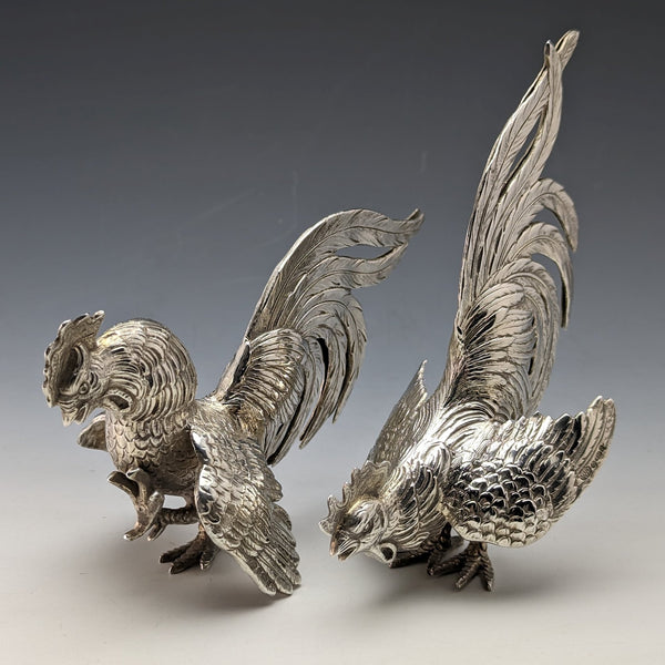 1962年 ドイツヴィンテージ 純銀製 闘鶏フィギュリン ペア 計242g Israel Freeman