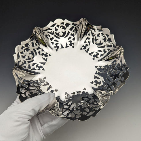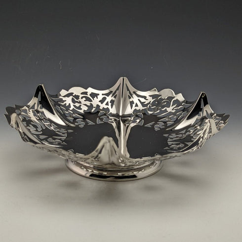 1936年 英国ヴィンテージ 純銀(925シルバー) ピアス装飾 脚付きボウル 196g Viners