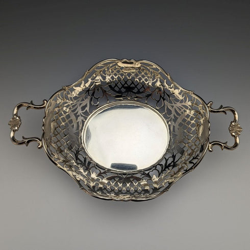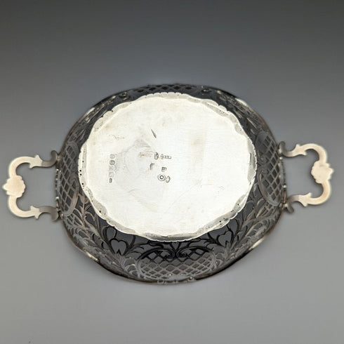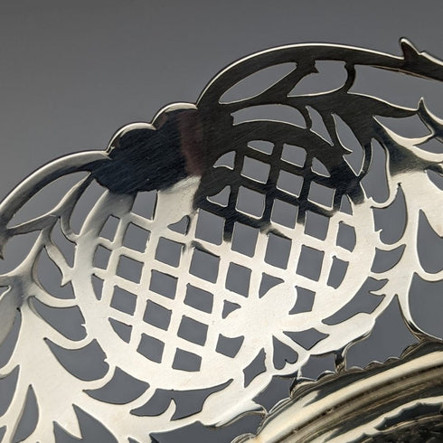 1892年 英国アンティーク 純銀製バスケット 細密ピアス装飾 218g