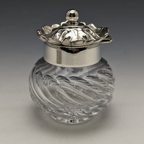 ガラス製の本体にシルバープレートの装飾がついた美しいインク壺が2個付属します。
