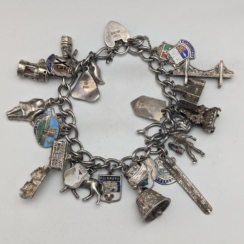 英国ヴィンテージ シルバー チャームブレスレット 75g