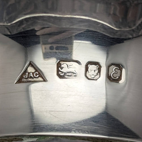 ・純銀部分には英国試金鑑定所による純銀を保証するホールマークがあります。
