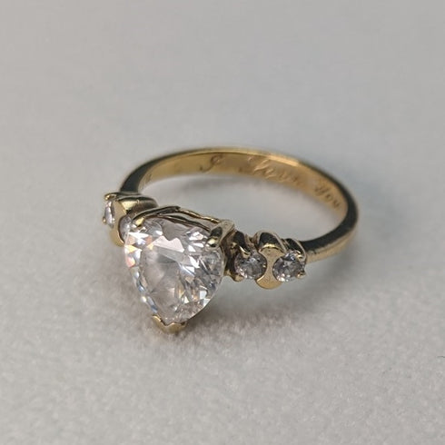 英国ヴィンテージジュエリー ハートシェイプジルコニア ギルト純銀リング 指輪