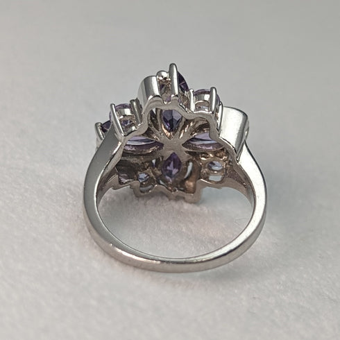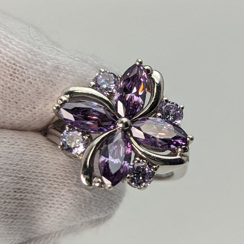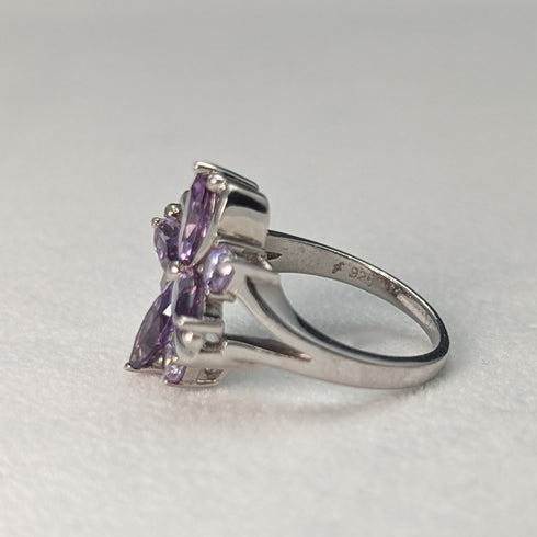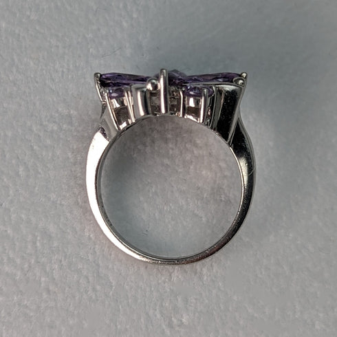 スターリングシルバー製のリングにアメジストと思われるパープルの石とジルコニアのリングです。