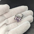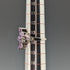 花びら状の4個の紫の石と透明な4粒の丸いジルコニアが放射状に並べられ、大輪の花のデザインとなっています。