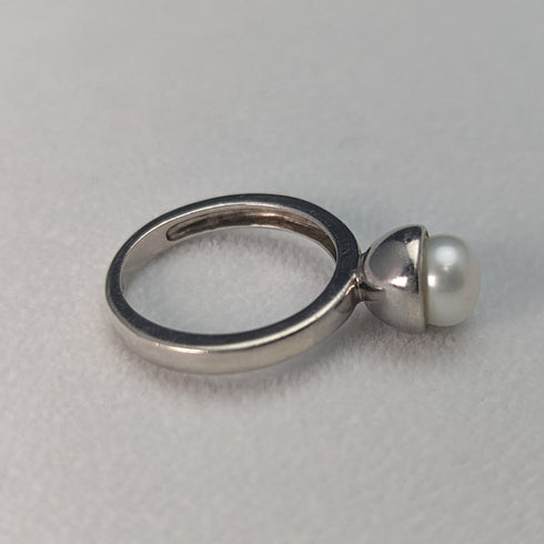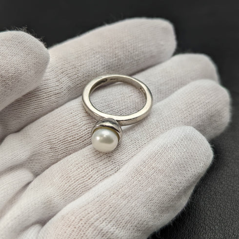 スターリングシルバー製のリングに一粒のパールが付いた指輪です。