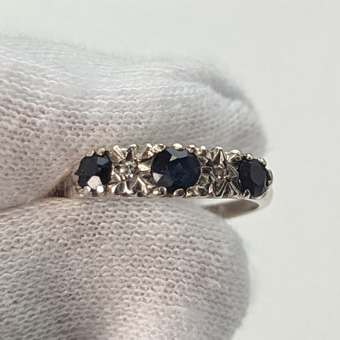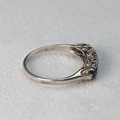 スターリングシルバー製のリングに一見ブラックに思えるほど濃いダークブルーの石が3個並んだリングです。