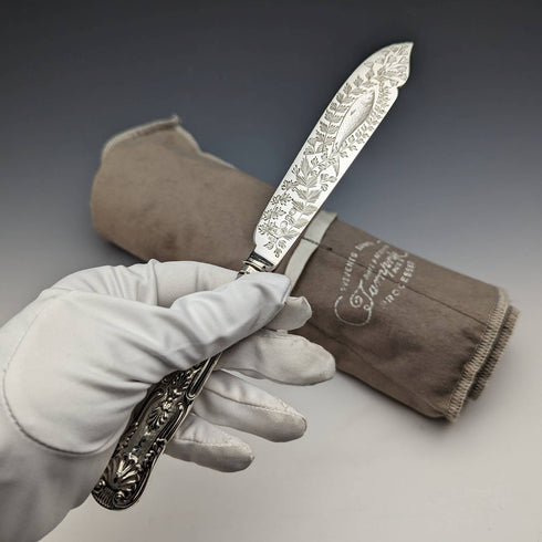 英国アンティーク 純銀製ハンドル フィッシュカトラリー 5ペアセット 布ケース入