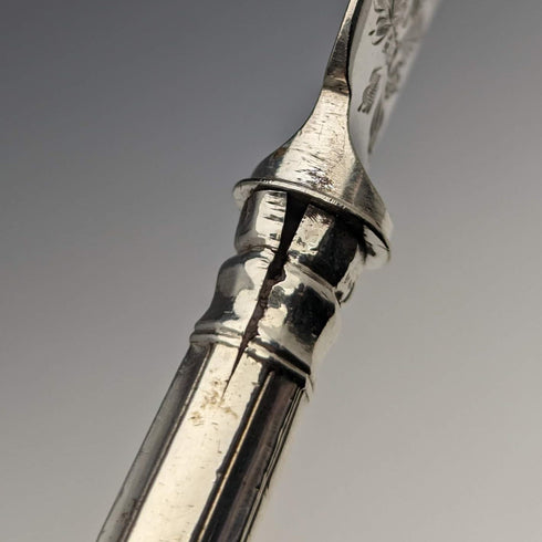 ・ハンドルには純銀を保証するホールマークが残っていますがデイトレターは不明瞭です。