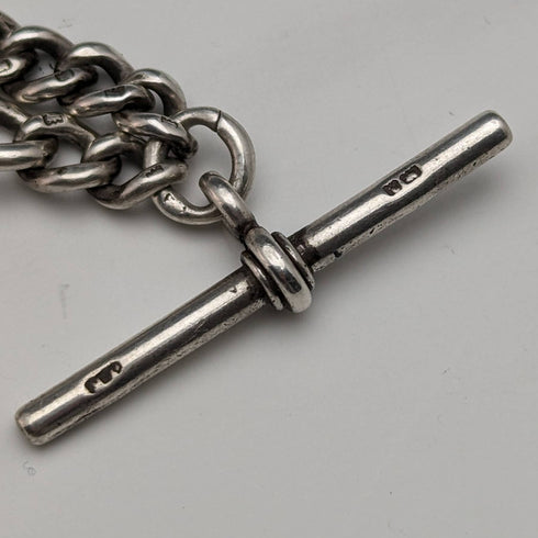 1900年頃 英国アンティーク 純銀製アルバートチェーン 30g ファンシーリンク タッセルフォブ