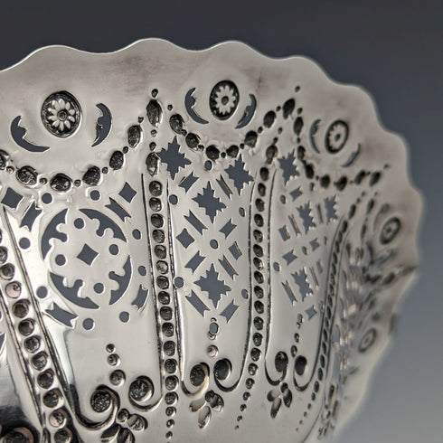 1894年 英国アンティーク 純銀製 ピアス装飾 ボウル/デッシュ 232g Martin Hall