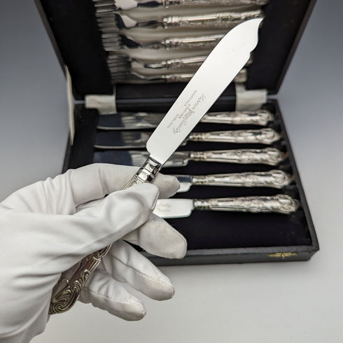 1973年 英国ヴィンテージ 純銀製ハンドル カトラリー6ペアセット 箱入り Harrison Brothers
