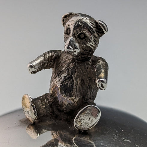 小さなテディベアのチャームがついた可愛らしい純銀製の小さなケースです。
