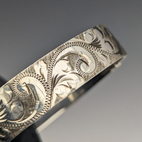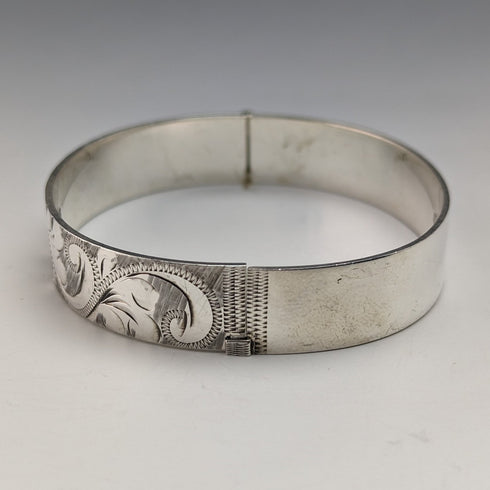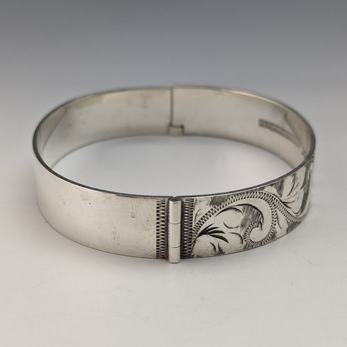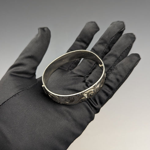 1975年 英国ヴィンテージ 純銀製 彫刻ブレスレット 26g Bracelon Ltd