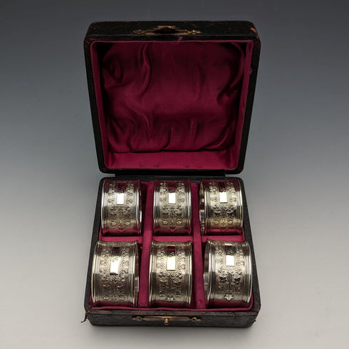 19世紀末頃 英国アンティーク シルバープレート製 ナプキンリング 6個セット ケース入り