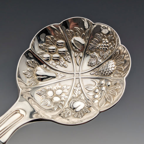 ボウル部分に華やかな装飾が施されたクランベリースプーンとなります。