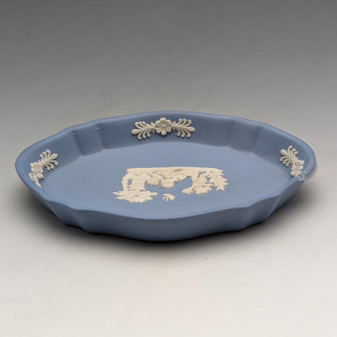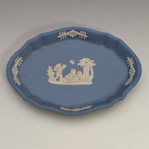 英国ヴィンテージ ウェッジウッド ジャスパーウェア製 オーバルディッシュ ペールブルー