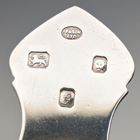 ハンドル部分には英国試金鑑定所の純銀のホールマークがしっかり刻まれています。