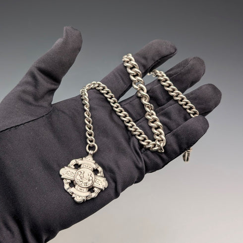 1890年頃 英国アンティーク 純銀製アルバートチェーン 65g 純銀メダルフォブ