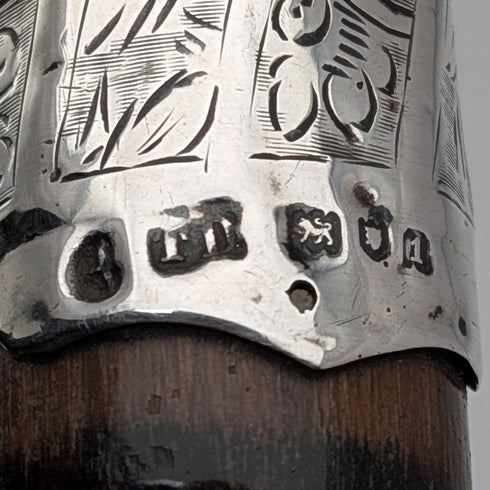 1906年 英国アンティーク 茶軸 L字ハンドル 純銀装飾 ステッキ 杖 92cm Thomas Davis