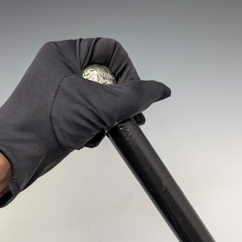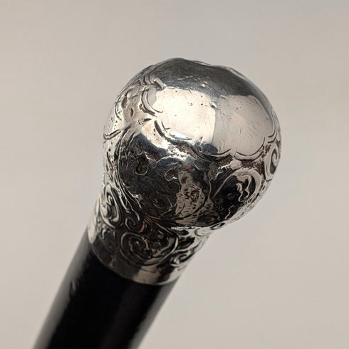 1883年 英国アンティーク ブラックシャフト 彫刻純銀製 丸ハンドル ステッキ 杖 89cm