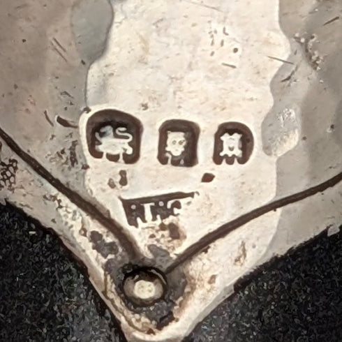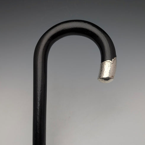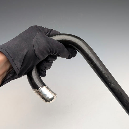 1935年 英国ヴィンテージ ブラックシャフト 曲がりハンドル 純銀装飾 ステッキ 杖 91cm
