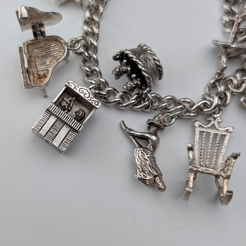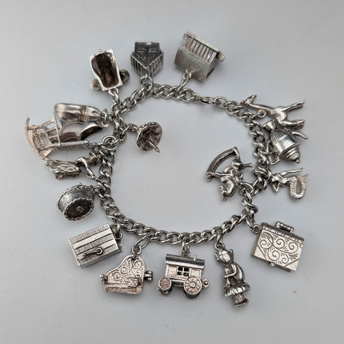 英国ヴィンテージ 純銀製 チャームブレスレット 48g