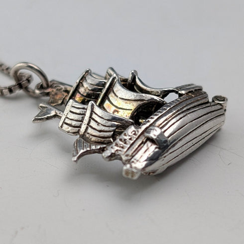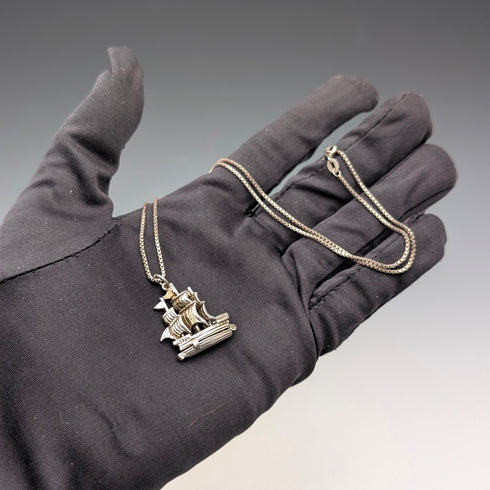 ヴィンテージ 帆船型ペンダント 純銀ネックレス付き