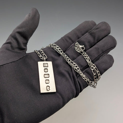 スターリングシルバー製の1トロイオンス インゴット型ペンダントです。