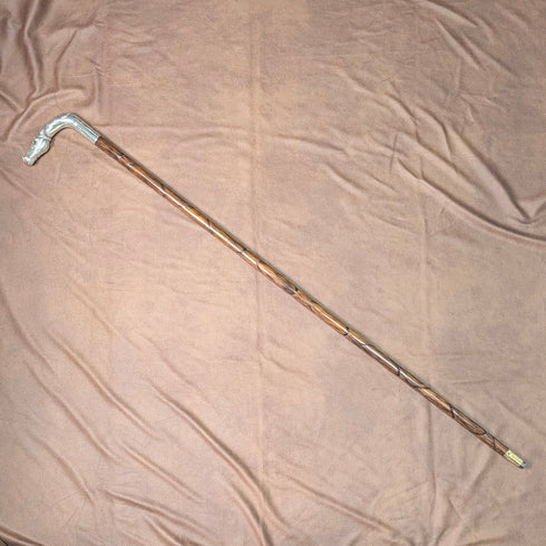 英国アンティーク ブラウンシャフト 純銀製ホースヘッドハンドル ステッキ 杖 92cm Emma Blumenstein