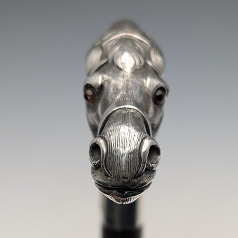 高級ステッキの代名詞である馬の頭をかたどった純銀製のハンドルとなっています。