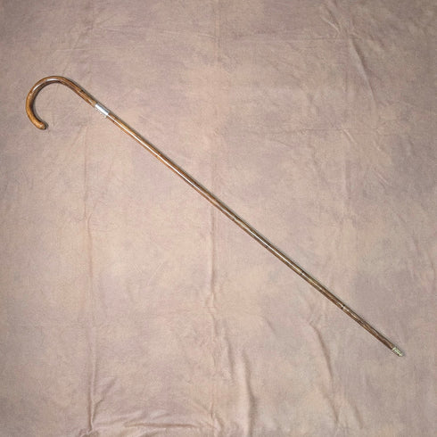 1930年頃 英国ヴィンテージ ブラウンシャフト 曲がりハンドル 純銀装飾 ステッキ 杖 89cm