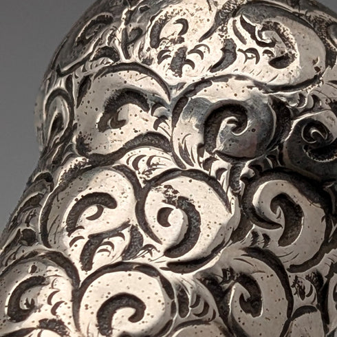 ハンドルの純銀部分は一部欠けがありますが、美しい装飾がほどこされています。