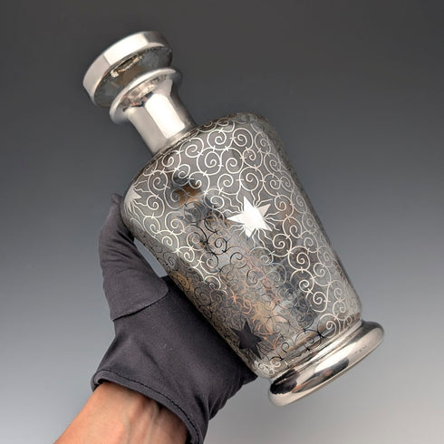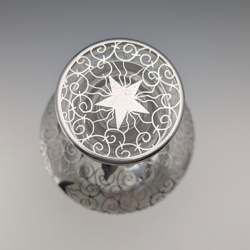 シルバーオーバーレイと呼ばれるガラスの表面に純銀の装飾を被せる技法のもので、19世紀末から20世紀初頭頃にアメリカ等で盛んに制作されました。