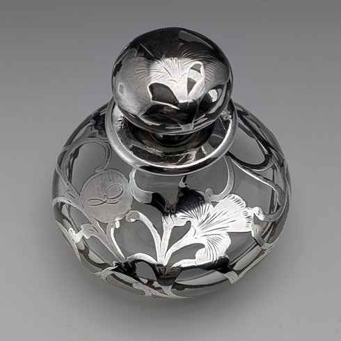 こちらは米国「Alvin社」のものと思われる香水瓶で、全体に花をモチーフとしたアール・ヌーヴォースタイルの純銀の装飾が施されています。