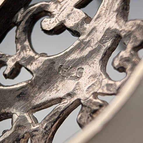 台座は上部にピアス(穴あけ)装飾がほどこされ、下部にマザーオブパールが埋め込まれています。