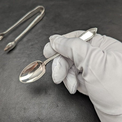 Around 1916 British Antique Pure Silver (925 Silver) 6 Teaspoons & Sugar Tong Set in Case Walker & Hall