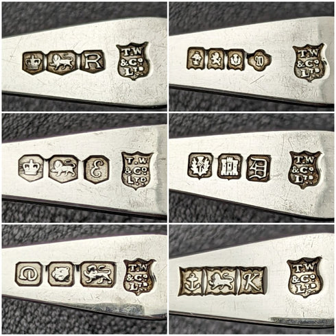 This is a 1959 British sterling silver teaspoon set.