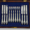 1858 British antique sterling silver blade cutlery set 6x2 in mahogany case