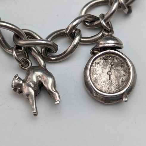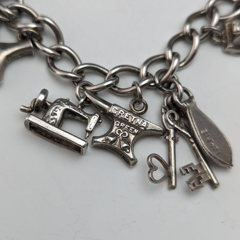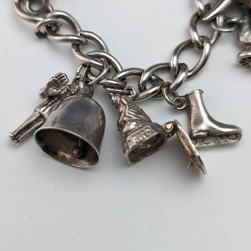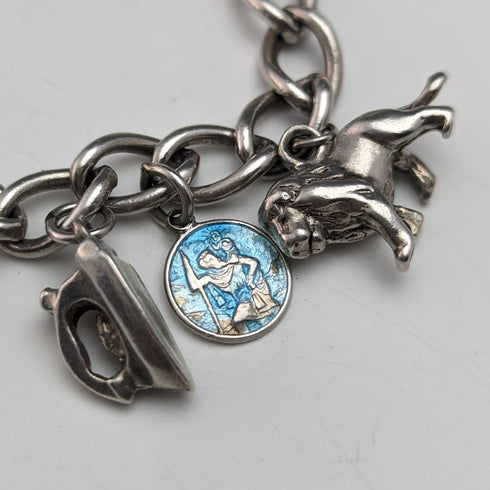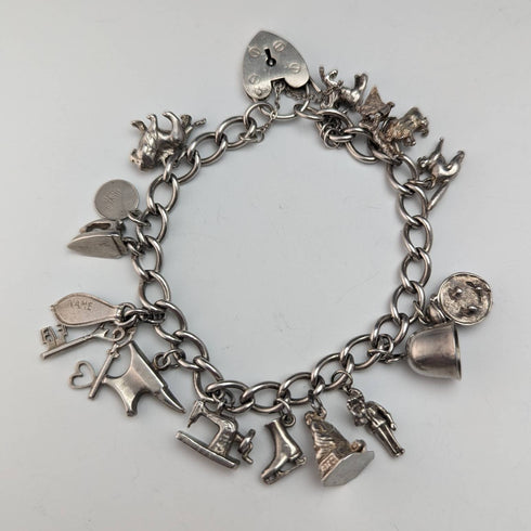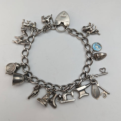 British vintage sterling silver charm bracelet 45g