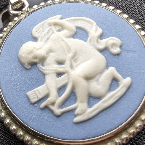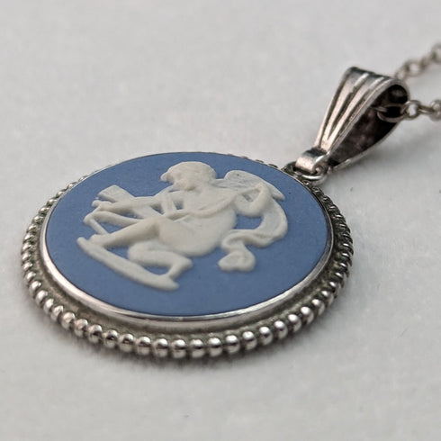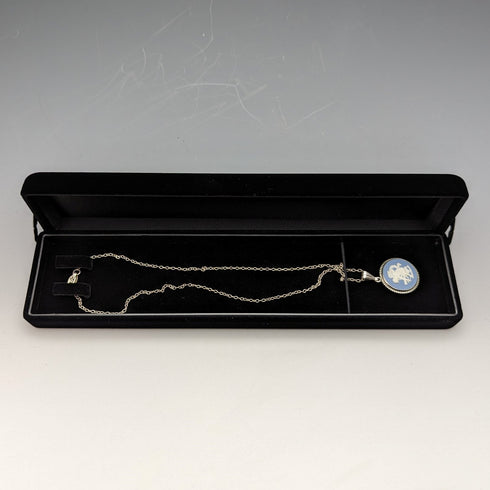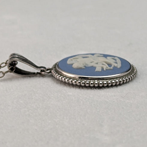 1975 British Vintage Wedgwood Sterling Silver & Jasperware Pendant Necklace