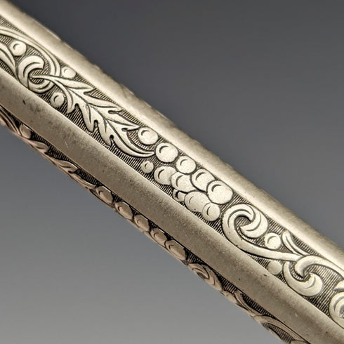This propelling pencil is made of sterling silver and has detailed etchings that give it a very atmospheric feel.