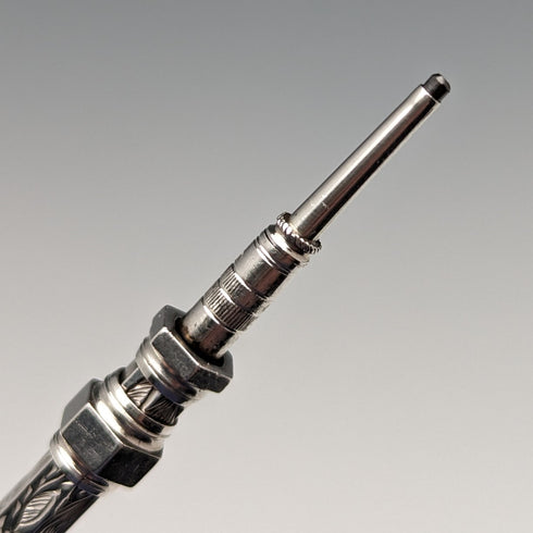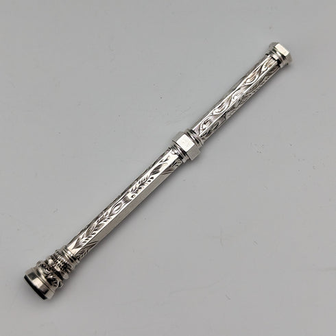 This is a propelled pencil with beautiful decorations on the silver-plated pen barrel.