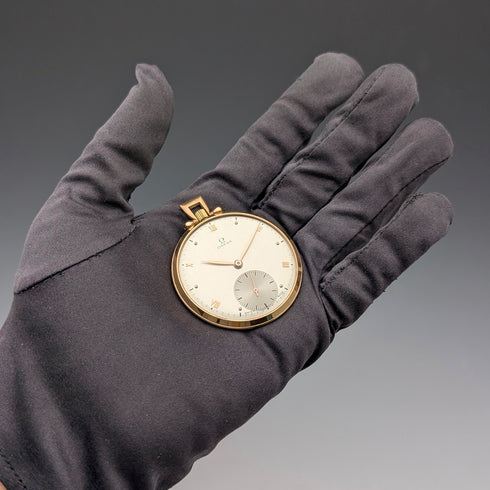 Circa 1939 Omega pocket watch, K18 yellow gold, thin open face, in good working order