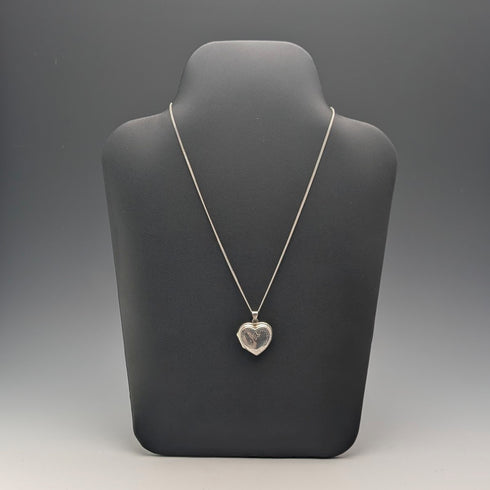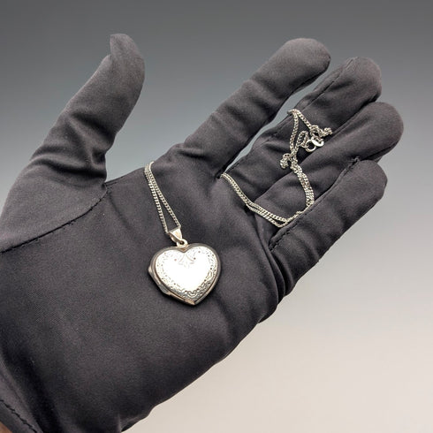Vintage sterling silver heart locket pendant with sterling silver necklace, 7.3g total