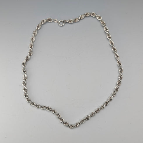 British vintage sterling silver twisted chain necklace 40cm 12.5g EJLd