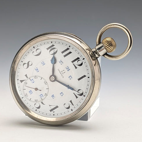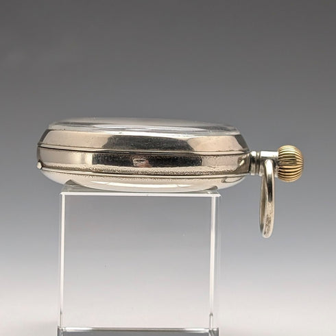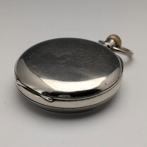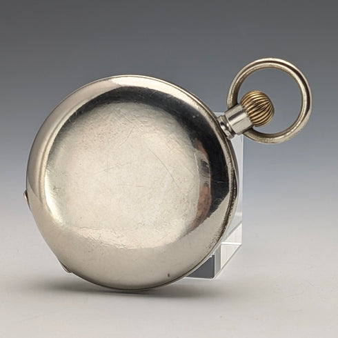 This is a silver-plated nickel alloy case pocket watch from around 1920.